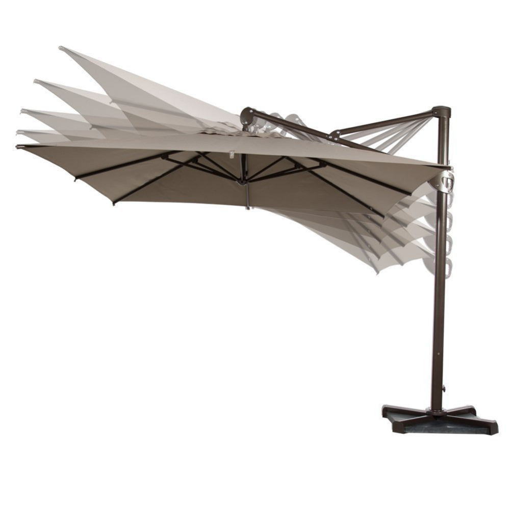 Размер: 2.5х2.5 м Материал: плотная ткань 250 гр/м2 полиэстр с водоотталкивающей пропиткой. Без канта по периметру Труба профильная алюминиевая 53*77 мм, 8 спиц D25*18 мм (сталь) Педаль-рычаг в основании стойки для вращения на 360 градусов. Стальное крестообразное основание в комплекте. Цвет: темно-бежевый Плиты 50x50 не входят в комплект