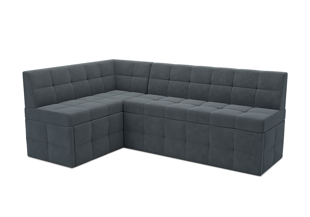 —Кухонный угловой диван дельфин Атлантис велюр серо-синий