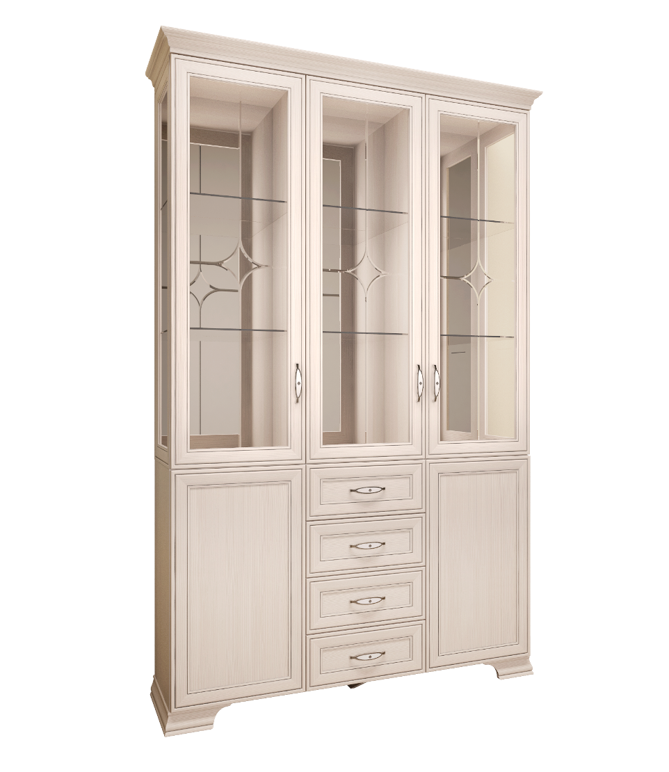 Гостиная «Венеция» выполнена в светлом декоре «Бодега светлая», в лучших классических традициях.- Каркасы модулей ЛДСП 16 мм в декоре «Бодега светлая». - Фасад ЛДСП 16 мм в декоре «Бодега светлая» - Регулируемые опоры. - Петли с доводчиками на всех фасадах. - Шариковые направляющие полного выдвижения на ящиках. - Высота шкафов - 2213 мм. - Ручки металлические цвет - "Хром глянцевый" с белой вставкой
